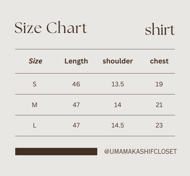 Modish size chart