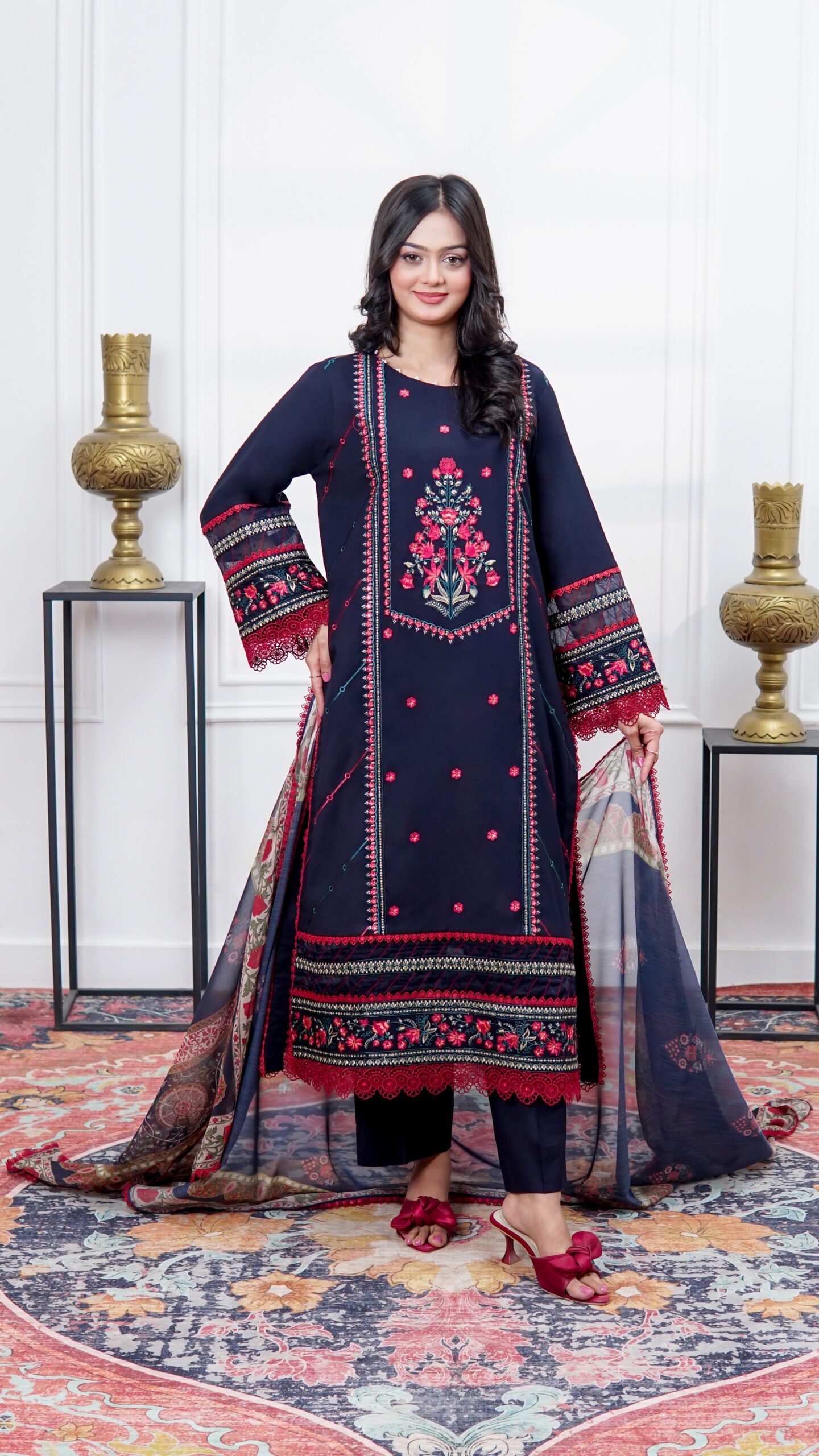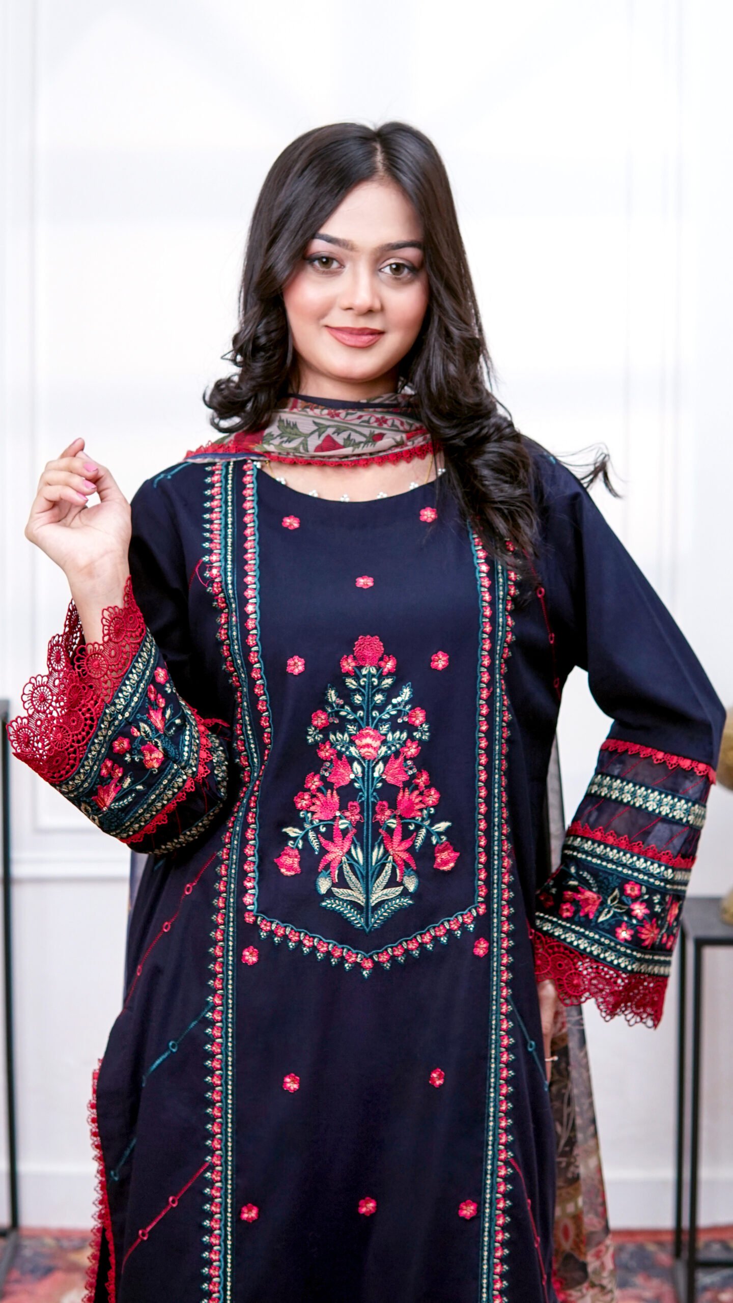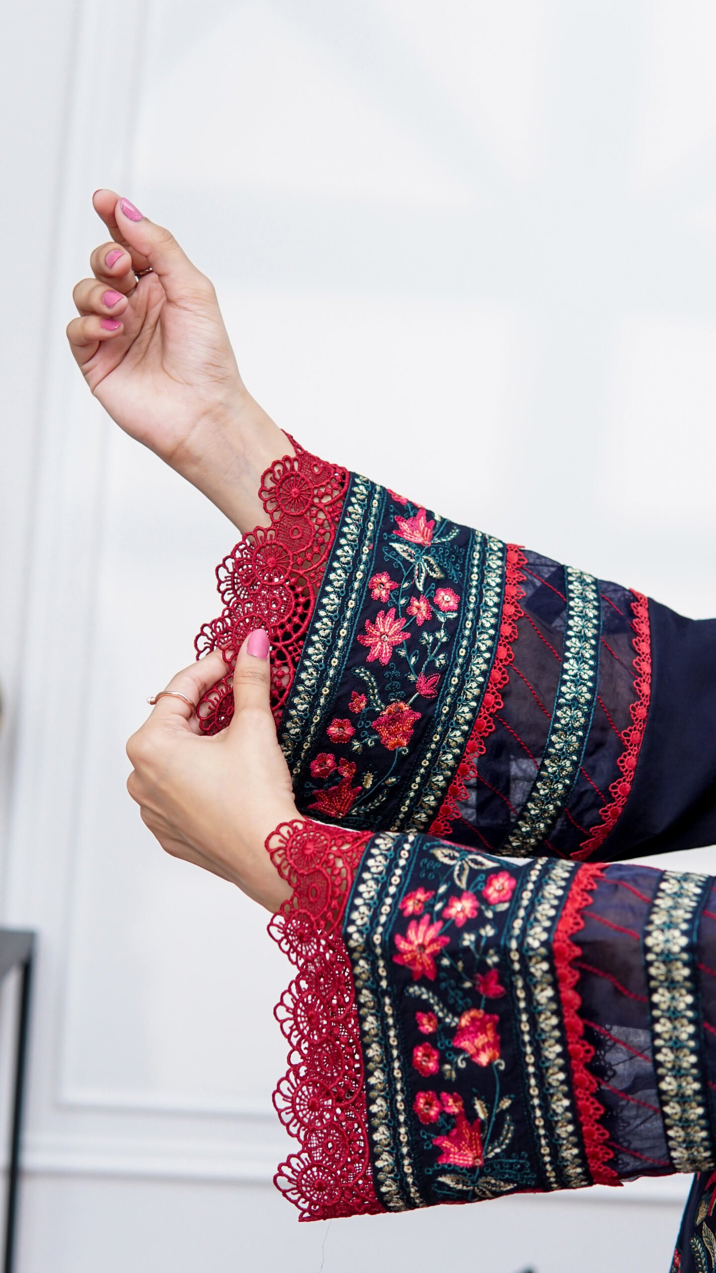 Embroidered Border (Shirt Front, Back, Daman & Sleeves): 2.5 yards