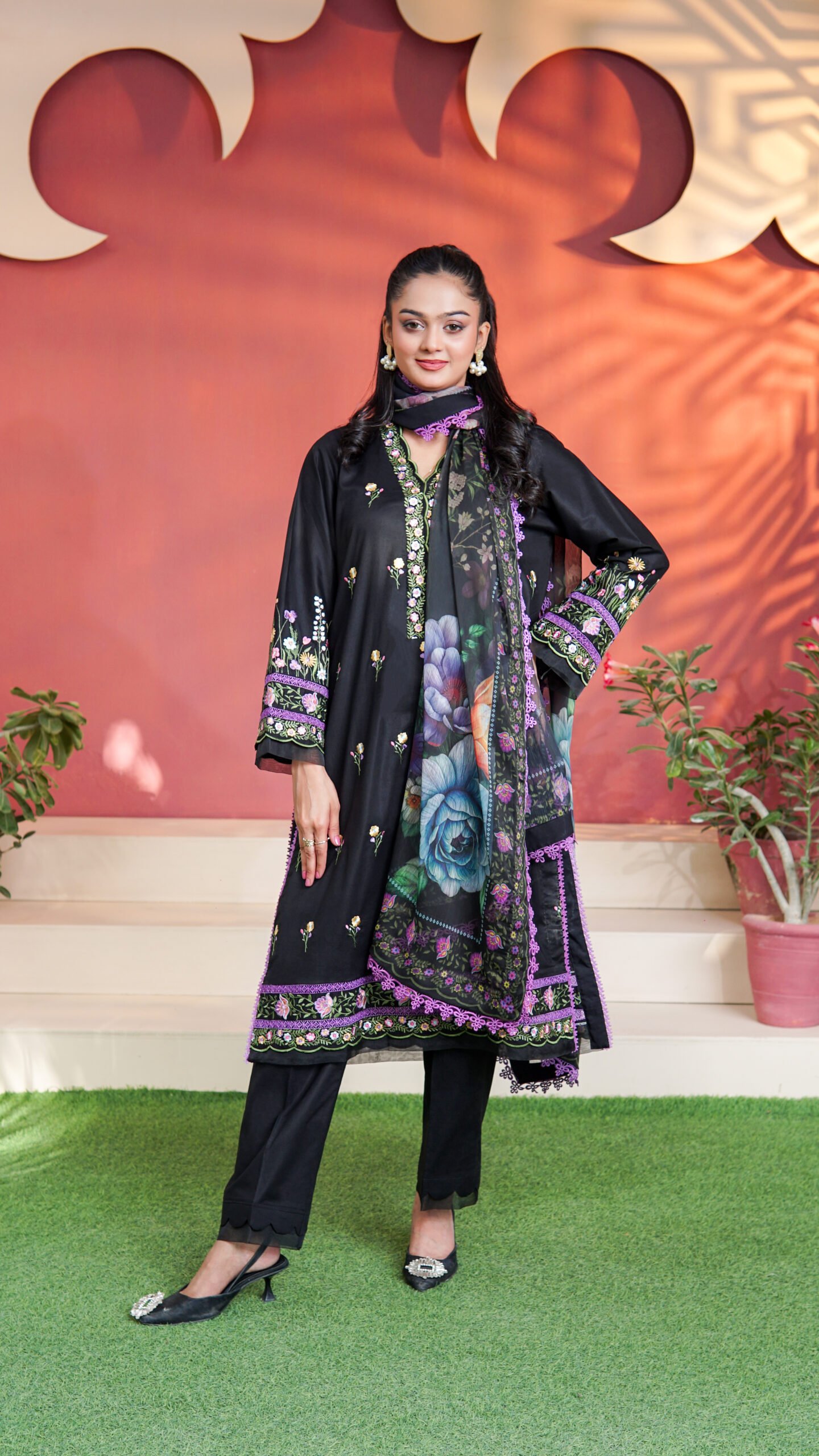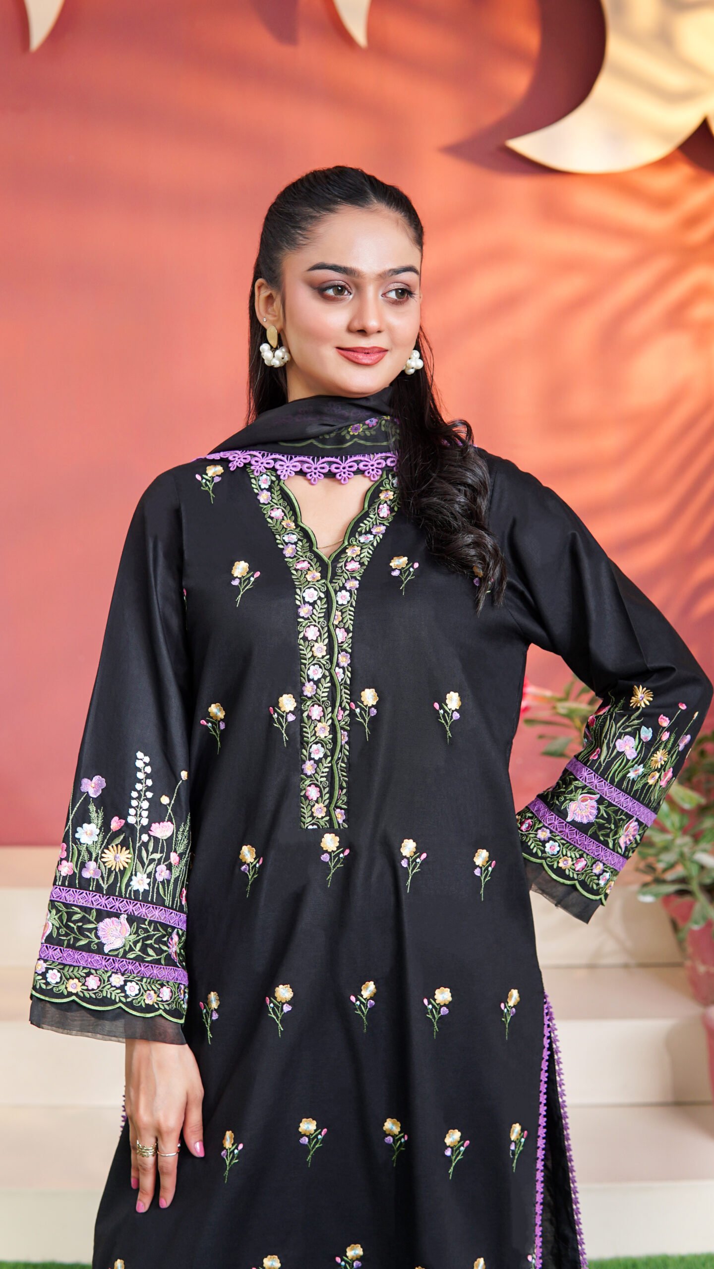 Embroidered Border (Shirt Front, Back, Daman & Sleeves): 2.5 yards